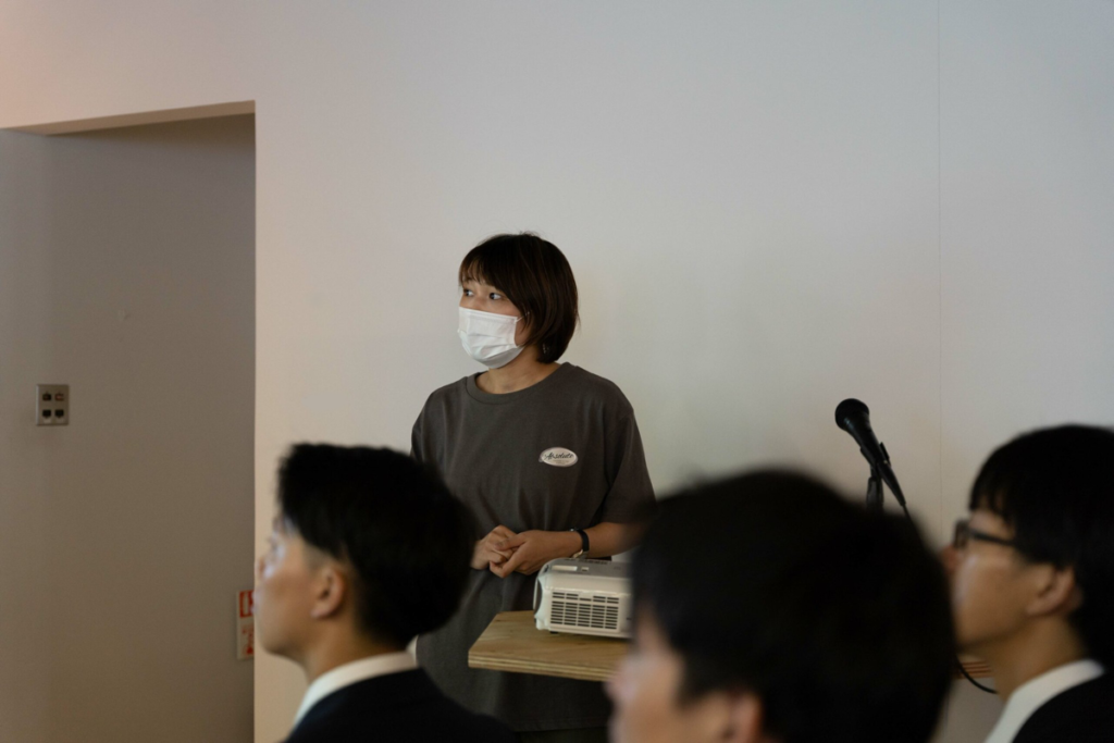 入社後すぐ、案件に携わらせてもらえるため、自分で考え行動することが必要だと感じているとのこと。お客様のブランディングに貢献できるよう、様々な視点に立って考えられ言語化できるデザイナーになることを目標にしているとお話しいたしました。