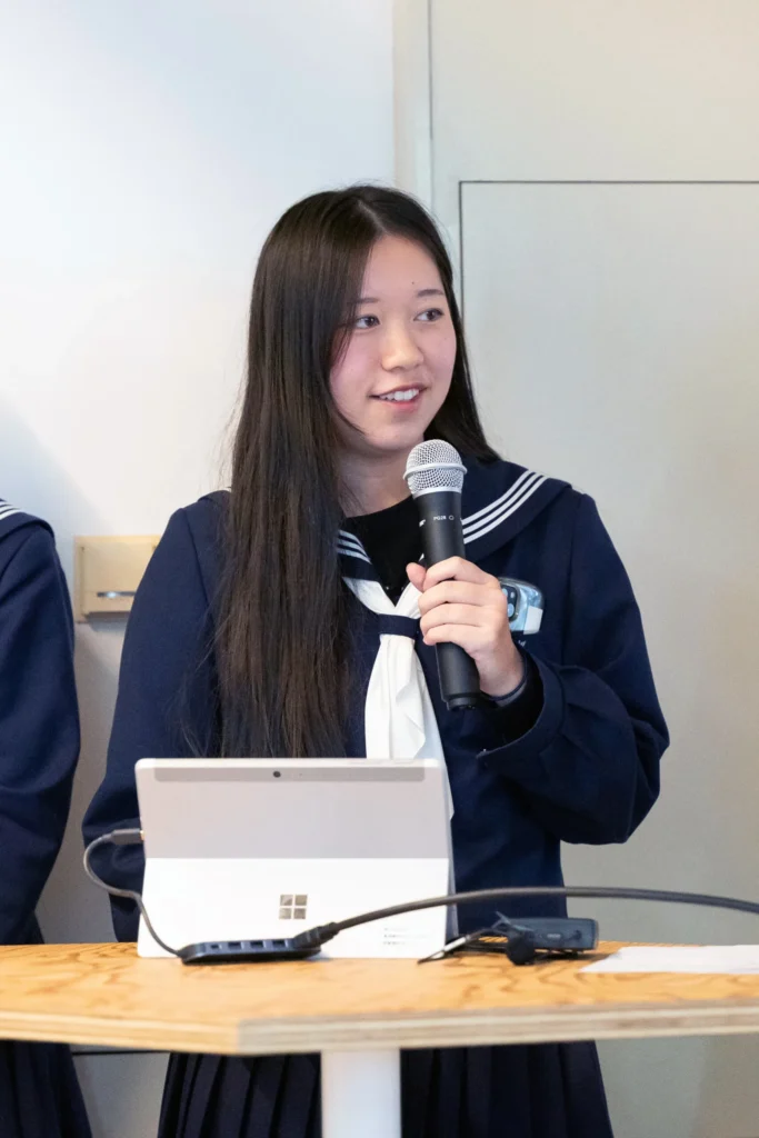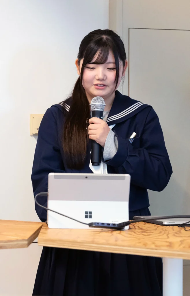 「緊張する」と言いながらも何度も発表の練習を重ね、実際の発表では堂々とした話しぶりで、見事に自身の作品を紹介してくれました。