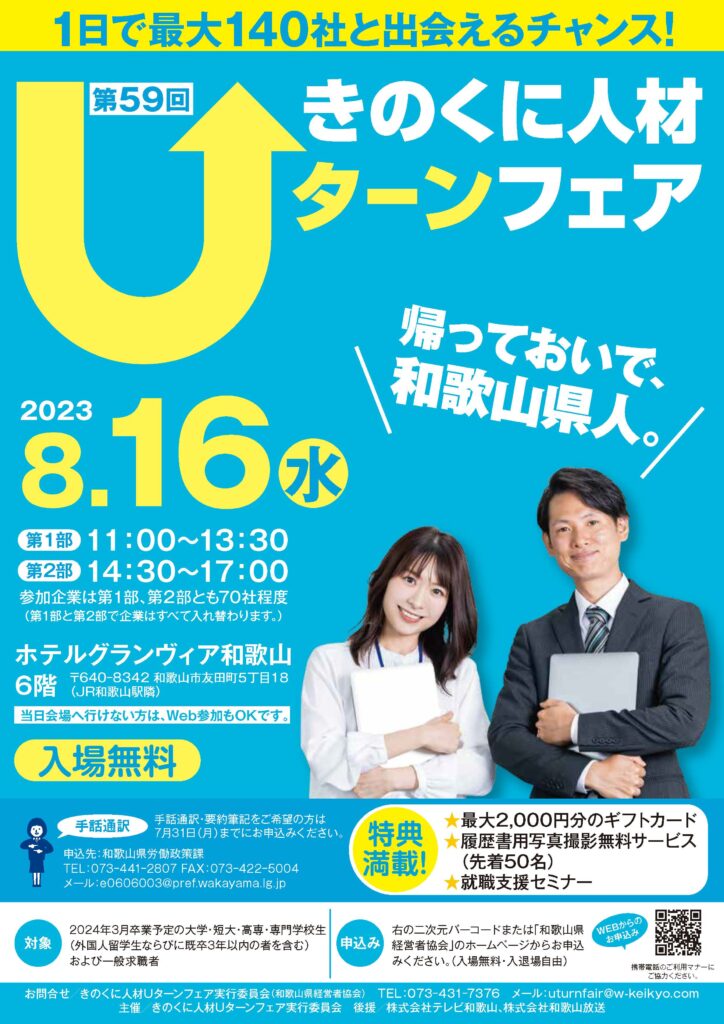 8/16(水)『きのくに人材Uターンフェア』に参加します。