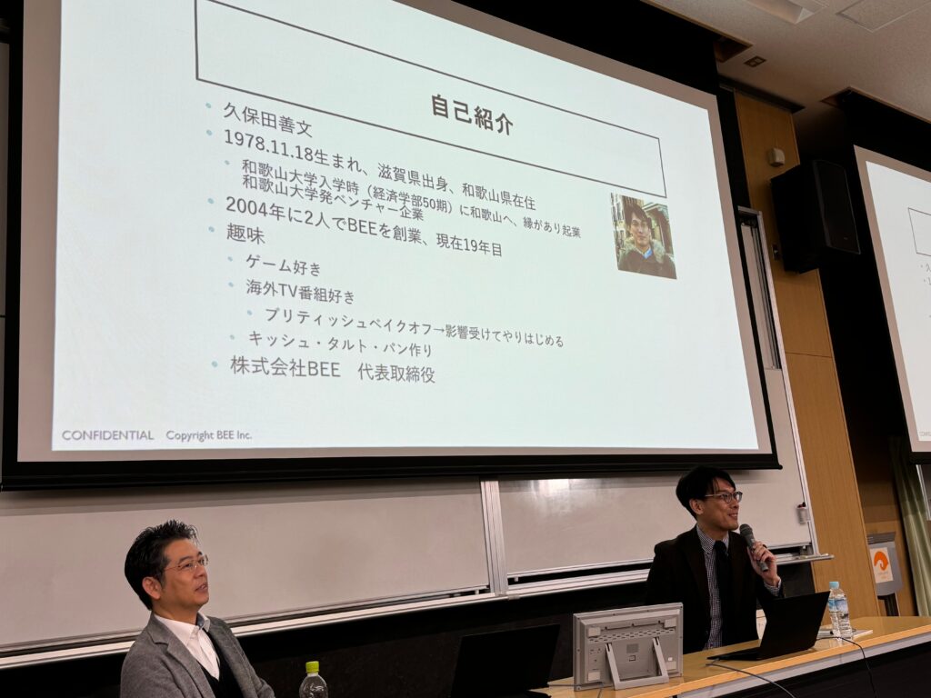 12月21日(木) 和歌山大学にて代表の久保田が講義を行いました。講義では、起業に至った経緯や経営理念についてお話ししました。