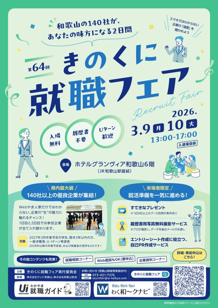 2026年3月9日(月)『第64回きのくに就職フェア』に参加します!
