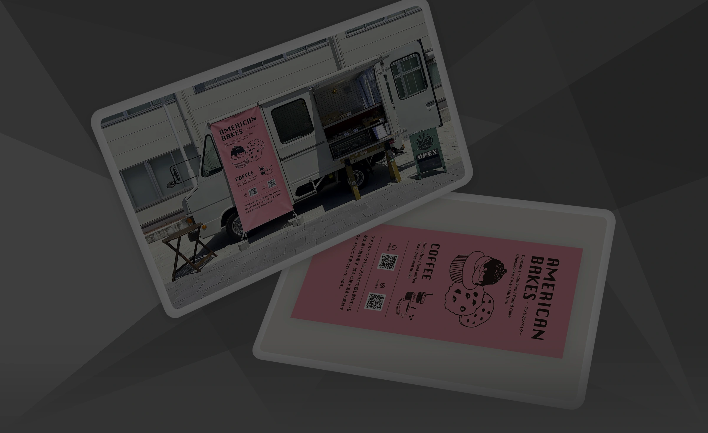 ピンク色はCUPS様が内装やロゴに使用しているテーマカラーでもあります。離れて見ても目に留まるよう、白いキッチンカーとのコントラストを意識しました。