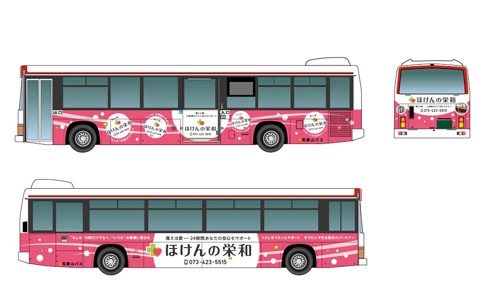 和歌山を中心に地域密着型で保険事業を展開する株式会社栄和様のバスラッピングを制作いたしました。