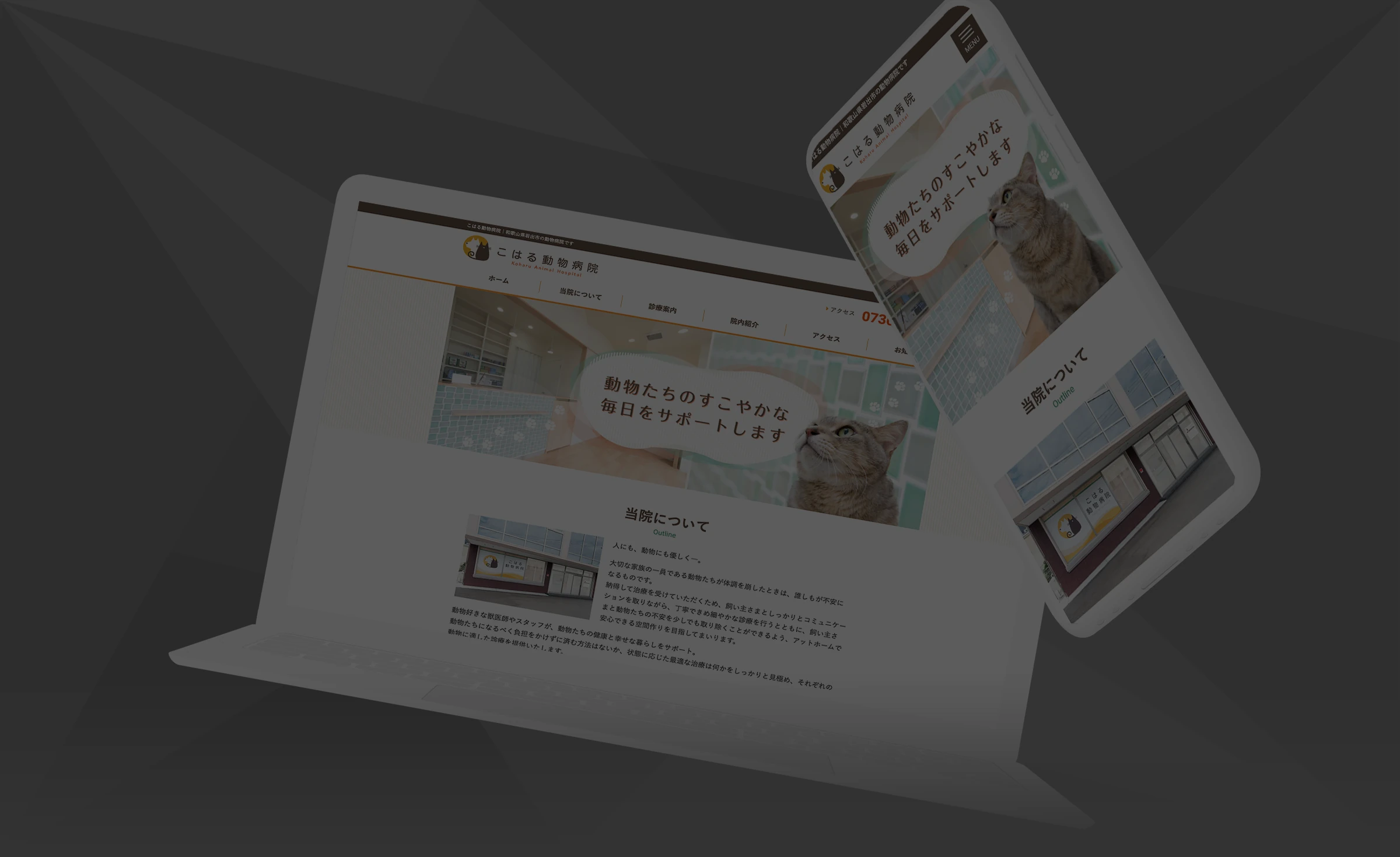 岩出市に新たにオープンしたこはる動物病院様。開院にともなって必要なロゴマークや名刺、ホームページ、オープン告知チラシまでVIデザインをトータルで制作させていただきました。